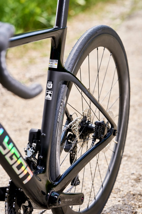 - Cuadro y Horquilla de Carbono con certificación UCI